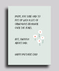 Mom, you sure had to put up with a lot of obnoxious behavior. But enough about Dad. Happy Mother's Day.