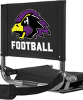 Get ready for ultimate comfort and support with the 17" wide and 14" deep bungee reinforced padded seat of the Chaska Hawks Football Stadium Seat (printed on back of backrest). You'll love the 15" high backrest and water-resistant cushions made of durable canvas fabric. Plus, with a sturdy aluminum frame and bleacher hook for stability and safety, this folding stadium seat is perfect for any game. Easily carry it with the shoulder strap and built-in cushioned handle, and get ready to cheer on your team in style!